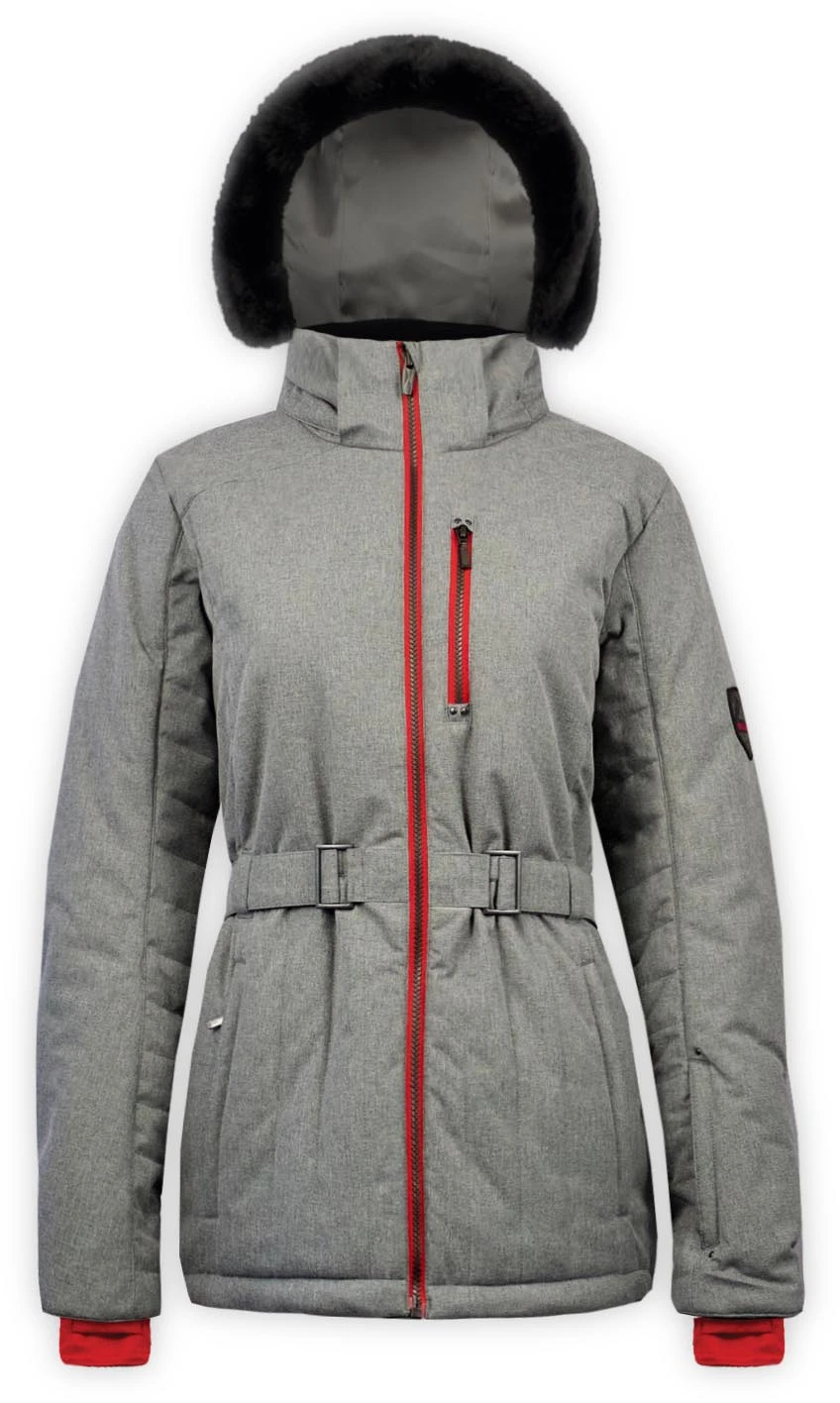 Streamlined and stylish, the alpine inspired Regal Belted Jacket was designed for elegance and grace without sacrificing performance. Utilizing shell fabric that allows for maximum movement, the (15,000mm/15,000g2) waterproof/breathability laminate ensures superior winter protection. The Primaloft® insulation provides warmth without additional bulk. Detachable the faux fur and a removable hood allows a customized look. Underarm venting, internal powder skirt, and distinctive trims are just a few of the fabulous features of the Regal Belted Jacket.