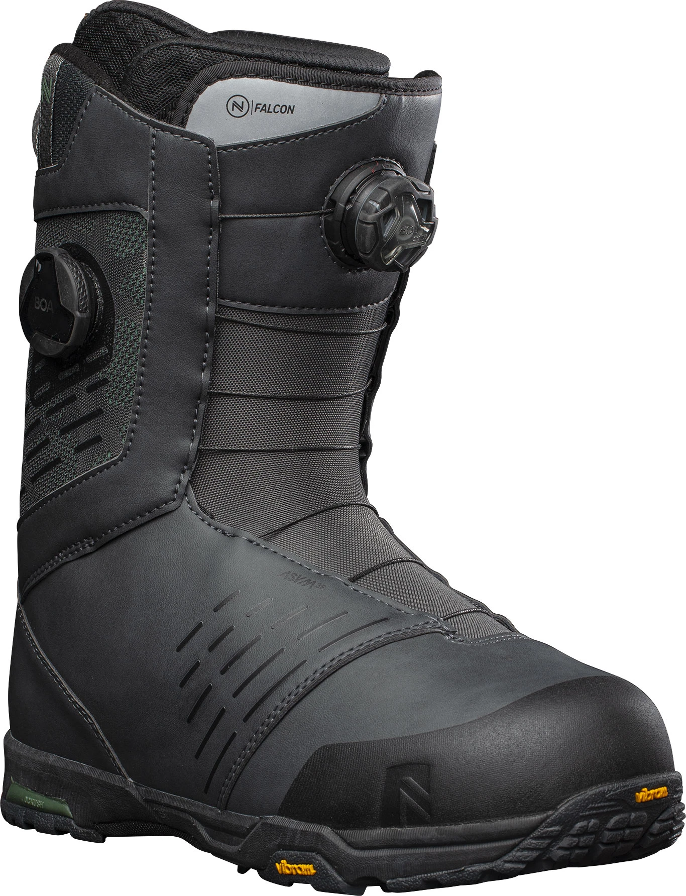 The Falcon is a team favourite that blends cutting edge boot tech with a mid-stiff flex for premium all-mountain performance.Built around our FlowFit™ last, it’s designed to offer a seamless connection to both Nidecker two-strap and Flow speed-entry bindings. The asymmetrical construction perfectly matches the shape of each foot and works alongside the latest Boa H4 Coiler™ for rapid, pain-free adjustment of both the lower and upper boot. Our most advanced Gold Level Heat Moldable Liner will adapt to your foot over time or can be customized instantly in store. It features a Ripper Lacing Harness and Power Strap for secure hold whether you’re burning wax on piste or sending it in the backcountry. The Falcon also benefits from a top-of-the-line Vibram outsole that’s optimized for grip in icy terrain, with OC-Kush™ cushioning at the heel and forefoot. Experienced riders won’t find a more versatile or comfortable boot.